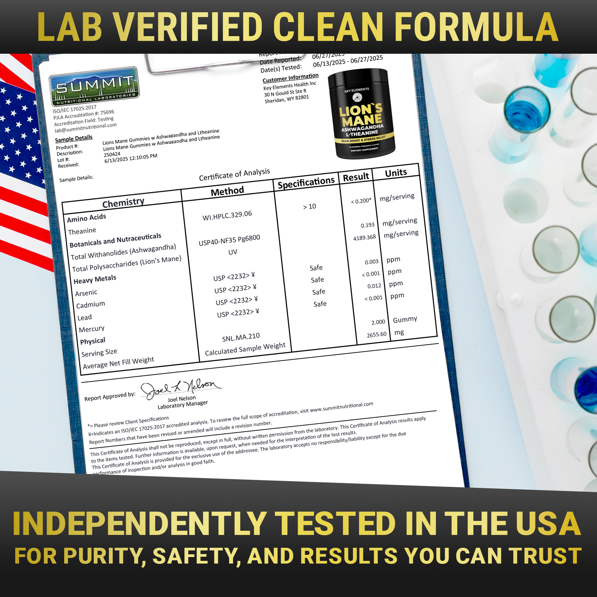 🏆 UNIQUE FORMULA: Key Elements introduces a distinctive blend, synergizing 3 powerful components for heightened productivity, mental clarity, and improved focus & concentration while maintaining a calm and relaxed state. It's not just about boosting your brain with Lions' Mane mushroom, it's about feeling good, calm and relaxed with Ashwagandha and L-theanine. Our secret lies in the synergy of these components for ideal brain productivity and emotional wellness – the key to great minds!