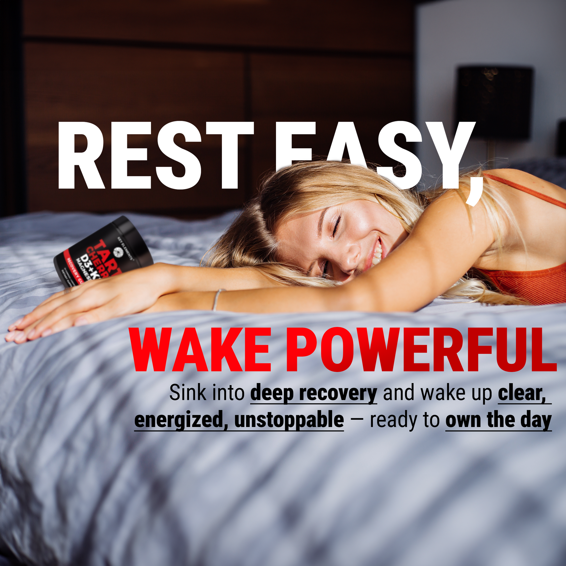 Your best progress starts when the lights go out. While you sleep, your body rebuilds, restores, and recharges. Tart Cherry + D3 + K2 + Magnesium fuel that process β turning your rest into real results.