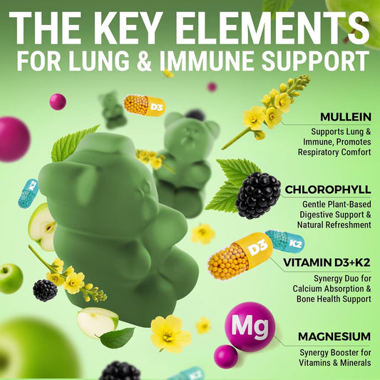 Mullein Gummies for Lung Support with Chlorophyll Magnesium & Vitamins D3 K2